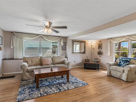 Furniture included? Yes! This home conveys with select pieces. Located in a friendly and welcoming 55+ community, this charming mobile home offers 1,898 sq. ft. of versatile living space. The home features two bedrooms and one bath, plus additional living areas created by the owner through enclosing a lanai creating an additional room and bath converting the former pool space into an additional office/den and a garage with attached storage. The spacious lot and inviting curb appeal make this home warm and welcoming. Residents enjoy access to a sparkling pool and clubhouse and access to the community's private boat ramp which offers direct access to Lake Harris for boating and fishing?all these amenities are perfect for relaxation, social gatherings, and fun times with friends and neighbors. Conveniently close to shopping, dining, activities, medical centers, and the hospital, this home combines comfort, convenience, and community in one ideal location.