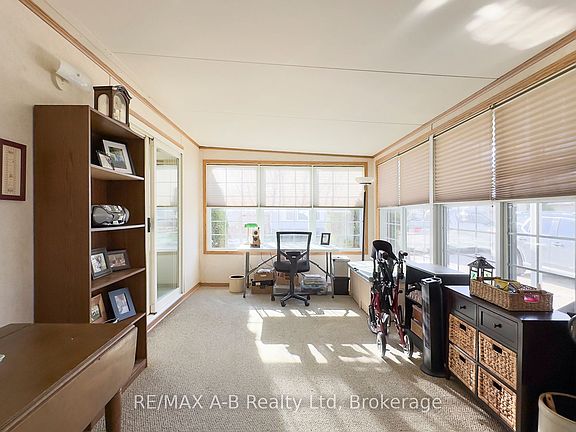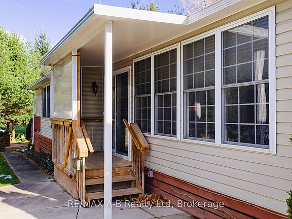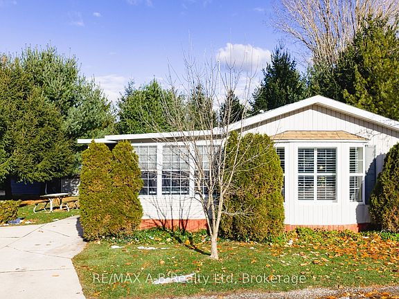Welcome to Happy Hills retirement village, where your next chapter begins! This two bedroom, one bathroom home offers comfortable and convenient living in a welcoming retirement community setting. The open concept, kitchen and family room, provide a bright and airy feel while the spacious living room and charming three season sunroom offer plenty of room to relax or entertain. Step outside to enjoy the large back deck complete with an enclosed gazebo and hot tub - perfect for hosting family and friends or simply enjoying peaceful afternoons. Additional features include a stand by Briggs and Stratton generator, new eaves trough with heat trace, newer vinyl plank flooring, and California shutter window coverings. At Happy Hills's retirement village you will enjoy gated entry, beautifully landscape grounds, a community recreation centre, which features an indoor heated pool, a rec hall and a variety of social activities making it the perfect place for you to call home.
