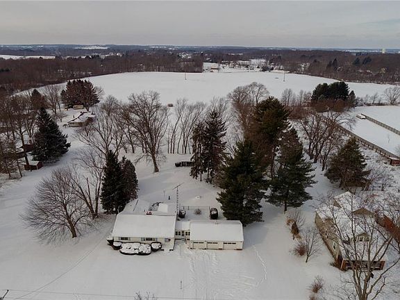 Incredible opportunity in Alliance! This Ranch is situated on 4 whole acres!! This classic 50's ranch offers original hardwood floors, 3 bedrooms, 2 full bathrooms and laundry on main level, attached 3 bay garage and a 4th garage on the lower level. The breezeway gives access to the garages and the kitchen. You will love the blast from the past when you walk in the kitchen! The dining area is open to the large bright living room. Off the kitchen is the enclosed sunroom with a gas heater. You will want to spend time here enjoying the wide open view out back! The bedrooms and main bathroom are located down the hall. The master bedroom has an addition that is a massive full bathroom and laundry room! Double vanity, walk- in shower and ceiling fan. The bath/laundry room does have an extra wide door as well, to easily accommodate a wheelchair. DO NOT MISS the basement! There is a large central area for normal storage plus 2 bonus rooms previously used as bedrooms. There is a wonderful separate workshop AND a garage/shed! The extra garage is the perfect place for your lawn and gardening tools and machinery. Fenced in area against the house. Extra wide driveway and turn around space. Don't let this one pass you by!