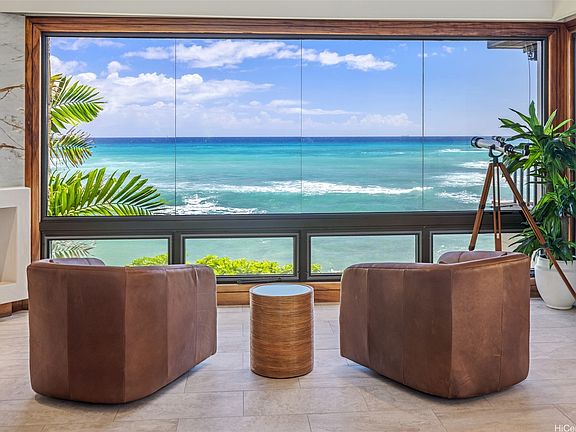 This turnkey luxury residence is a rare offering, now enhanced with further upgrades. Encompassing more than 4,000 sf of seamless indoor-outdoor living, the home sits at the foot of Diamond Head in the exclusive oceanfront enclave of Kuu Makana at Diamond Head. Within this private, gated community, the 3-bed + den/3-bath property exemplifies island elegance & refined sophistication. Rich, handcrafted woodwork flows throughout, elevating its timeless aesthetic. The gourmet kitchen is equipped for the discerning chef, showcasing Sub-Zero & Wolf appliances, custom Koa cabinetry & premium countertops. Generous living spaces incl a fireplace, creating a warm & tranquil setting. Expansive bedrooms offer peaceful retreats w/custom shelving, stunning Koa doors, and the convenience of an elevator. Every detail reflects exceptional craftsmanship and thoughtful design. Sustainable feats incl 34 PV panels, 3 TESLA Powerwalls and EV charger. Also features a large 2-car enclosed garage. With unparalleled ocean views, a premier location, and impeccably curated interiors, this home stands alone. This is a rare chance to own a piece of paradise in one of Hawaii’s most coveted coastal communities.