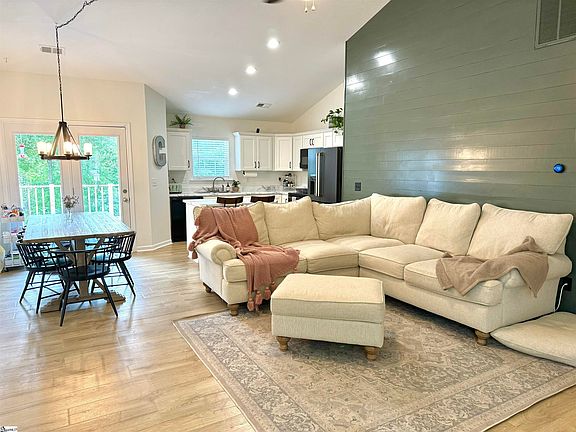 Welcome HOME to 3165 E Gap Creek Rd! Beautiful inside and out! This is a 1.45 acre lot that possesses one of the most peaceful and serene backyards you can find at this price point. Inside you will find new paint and flooring through the main areas and the primary bedroom. The main living area has a vaulted ceiling that demands amazing natural light. The bathrooms are nicely finished; the primary bathroom features double sinks, a separate shower and a garden tub. The kitchen has an island and plenty of cabinet and counter space. Outside you will find a beautiful fescue lawn, gorgeous landscaping, a privacy fenced backyard with a fantastic fire pit, mature trees, and a deck for outdoor living. Beyond the fence is a mix of open and wooded areas with a creek in the back of the large lot. Check out the virtual tour to see the layout of the home.