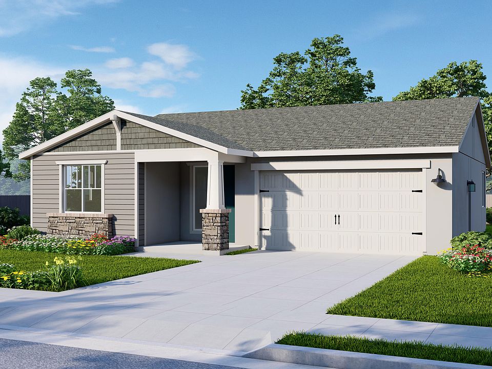 Lot 61 - Mission Oaks, in Tulare. Located in the Tulare School District, Mission Oaks features the Hilltop Series single and two story floorplans ranging from 1,483 to 2,436 square feet on large pool-size lots. Mission Oaks homes offer three elevation choices, including modern farmhouse, and come standard with 9-foot ceilings, covered patios, and a separate soaker tub and handset tile shower in the Master bath. Homes also include the standard Bonadelle Neighborhoods' features that other builders consider upgrades; such as, luxurious vinyl plank flooring, front yard landscaping, advanced smart home and eco-friendly technology, an abundance of windows for natural light, and granite kitchen countertops.