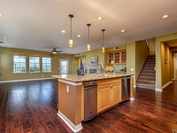 Enjoy spectacular city light and San Jacinto/San Gabriel/Santa Ana Mountain views from this amazing DR Horton built home! Perfectly positioned to soak in one of Corona's best views, this home is located in the coveted neighborhood of Hidden Crest which is right off of the new Foothill Parkway extension, making your commute a breeze! This home features a gracious open floor plan, which is evident from the moment you step in the front door and cast your eyes upon the beautiful engineered wood flooring which leads all the way back to the open family room and kitchen, providing a glimpse of the enticing view. Boasting over 3300 square feet with three bedrooms, a den off the entry AND a 400 square foot loft located upstairs which also has a large storage room/closet including an access door to the attic- the options are endless- this could potentially be a five bedroom home if one was so inclined. The three bathrooms include a half bath off of the main living area, a full bath next to the ancillary bedrooms which features a dual sink vanity, and a master bathroom that is huge with a tub and separate shower, with two vanities of it's own. The spacious master bedroom features not one, but two walk-in closets, along with a great view! The upgraded kitchen features beautiful granite counters with a large rounded-edge island, and stainless appliances including a double-oven, and is open to the oversized family room making it the perfect place to entertain all of your guests!