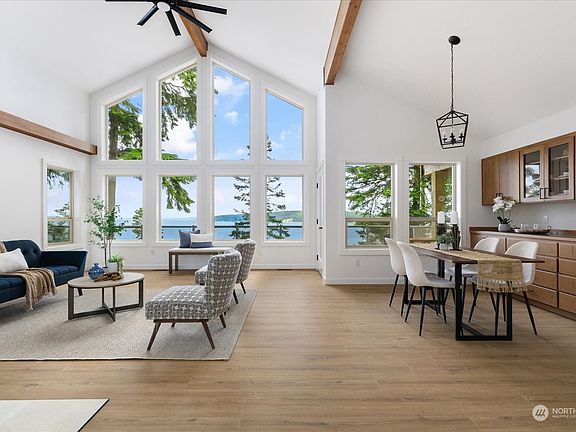 Take in the sweeping views of the Saratoga Passage and Cascade Mountains in this custom light-filled fully renovated home. Main floor features: open main floor concept with soaring vaulted ceilings, cooks’ kitchen that flows seamlessly to the dining room/living room that leads to the outdoor living space. Spacious main floor primary bedroom with 5-piece ensuite bath with direct access to deck. Lower-level features: rec room with rough-ins for bar area, 2 bedrooms with a shared full bath, unfinished theater room/storage area & covered deck area. Additional storage area in crawl space area with poured concrete floors & full-size doors & 2-stall garage Whidbey Shores Community amenities include private beach access & boat launch.