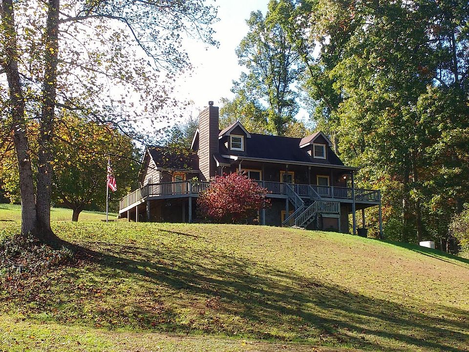 3 bedroom, 3 bath log home on 15 acres is bursting with charm. There's a wood burning fireplace in the living room and oak floors throughout the main floor. The kitchen has soapstone tile counter tops, a copper sink and stainless appliances. Master bedroom/loft with Pergo flooring features an office nook and plenty of under-eave closet\storage space. The compact laundry is conveniently located on the main floor,the walkout basement features high ceilings, a large family room, a workshop and utility area. The propane gas heating and cooling system is one year "new .The property boasts stunning mountain views,two spring fed ponds. The original 1871 cabin sits by the ponds and is a wonderful spot for guests