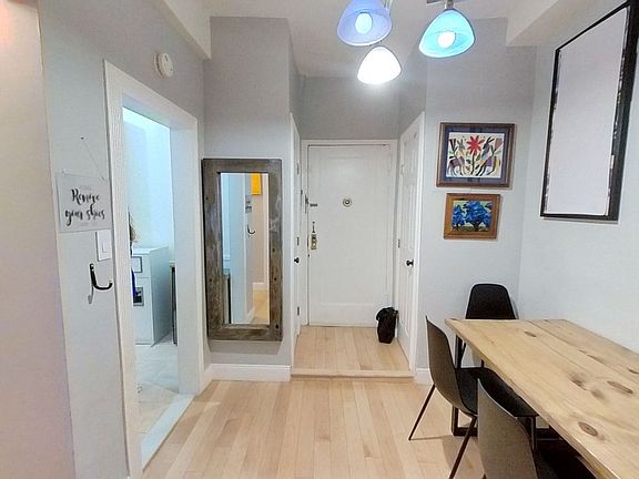 Open the door to your turn-key apartment and be immediately greeted by 2 coat closets and step into your dining foyer. Step over into the kitchen with plenty of clean white cabinets, stainless steel oven with microwave above, dishwasher near the sink and window. Leading back to the dining room is the cozy living room. King size primary bedroom with generous closet and 2 corner windows gives beautiful natural light. Tiled bathroom with window. Spacious secondary bedroom also has tall windows for natural light. Originally a 1-bedroom apartment converted to 2 to maximize the space with incredibly high ceilings and beautiful hardwood floors throughout.
