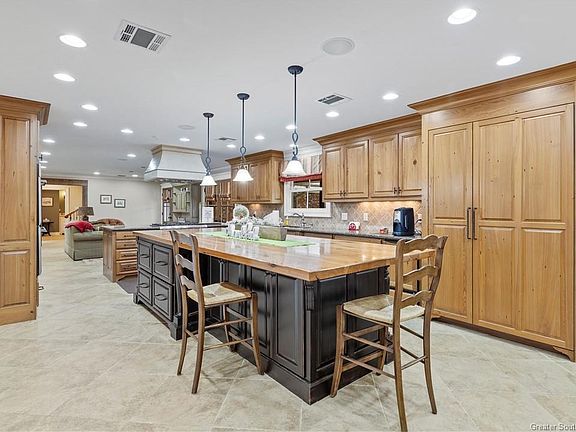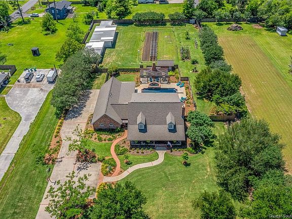 Come experience the charm and elegance of this immaculately maintained, custom-built home in South Lake Charles, located within the highly sought-after Barbe school district. Sitting on nearly 2 acres, this property offers a rare blend of luxury, space, and functionality--checking all the boxes for those seeking acreage, an inground pool, an incredible outdoor entertaining area, a spacious barn/workshop, and a dream kitchen! As you step onto the front porch, the warm glow of gas lanterns welcomes you, setting the stage for Southern comfort and sophistication. Inside, this expansive 4,260+ sq. ft. home features 4 bedrooms, 3 bathrooms, multiple living areas, a formal dining room, and a breakfast nook. The chef's kitchen is a showstopper, boasting custom cypress cabinetry, a double oven, a walk-in pantry, a large island with ample seating, and integrated, top-of-the-line Thermador appliances. The main floor showcases stunning oak hardwood and porcelain tile flooring, while the gas-burning fireplace adds a cozy ambiance. A versatile theatre/game room and an abundance of storage, including a decked attic with stair access above the three-car garage, add to the home's thoughtful design. Plus, all of the HVAC units have been recently replaced for efficiency and peace of mind. Step outside into a true backyard paradise! The impressive outdoor living space includes a custom Sabine chlorinated pool with a hot tub and tanning ledge, a gorgeous wood-burning fireplace, and a fully equipped outdoor kitchen--perfect for entertaining year-round. A deep water well with a softener system, a 24-zone irrigation system (including dedicated zones for hanging plants), and a mosquito misting system ensure peace of mind and comfort. Beyond the privacy-fenced backyard, you'll find even more acreage featuring a nice barn/workshop, ideal for a workshop and storing your toys. An additional heated and cooled building on the property provides endless possibilities--whether for a home gym, art studio, or private office. This home is located in Flood Zone X, meaning flood insurance is not typically required by mortgage lenders. An additional +/- 1-acre tract can also be purchased separately. Call for pricing and information! Schedule your private tour today and discover this exceptional South Lake Charles property--a perfect blend of luxury, tranquility, and convenience! You truly would say this is a MUST SEE Property!