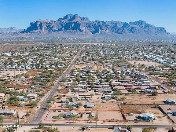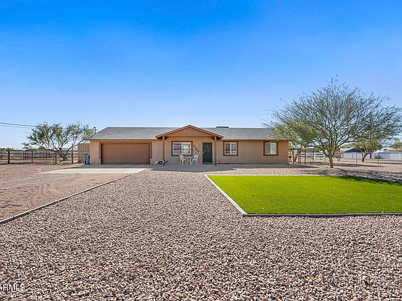 Welcome to this gorgeous property and beautifully remodeled home with recent interior paint, AC, refrigerator, cabinets and flooring! The spacious great room flows into good sized bedrooms with large closets. The property includes 6 horse stalls (5 covered) that all open to the large lighted and professionally flattened arena. Stalls have all been professionally re leveled with pea gravel and they all have water, fans and electric. There is also a large round pen with a light and a perfectly sized tack room with electric. The fully fenced lot includes a block-walled backyard off the main home with turf, low-maintenance landscaping throughout and plenty of room for toys. Zoned for any and all livestock. The amazing views of the Superstition Mountains complete this perfect property!