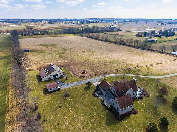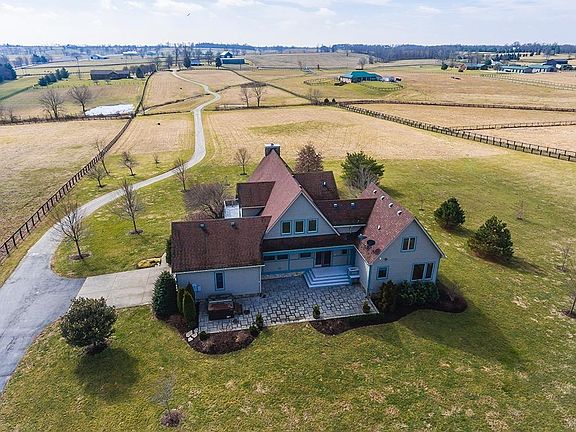 Beautiful home with gorgeous views on almost 27 acres just 20 minutes from the KY Horse Park or Lex and only 10 minutes to either Paris or Georgetown. 4-stall barn with room for more stalls, workshop with electric, huge fenced pasture for your horses with automatic waterer, run-in shed, and plenty of flat areas to build an arena. Spacious rooms with tons of windows and gorgeous wood floors in the over 5000 square foot home with geo-thermal. Two story family room with windows floor to ceiling and huge stone fireplace is perfect spot for entertaining. Gourmet kitchen with tons of cabinets, long island, double ovens, gas cooktop. 2 bedrooms, full bath, and utility room off kitchen. Loft/den upstairs and master bedroom with finished attic space that could be used as office, huge closet, or nursery. Master bath with large walk-in tiled shower and whirlpool. Walkout basement with spacious family room, kitchenette, bonus room and full bath.