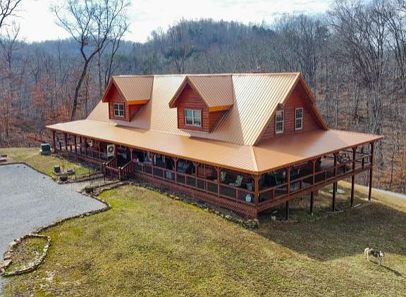 Wow... Beautiful log cabin home with over 4, 300 Square ft of living space and 2, 304 of unfinished basement to finish as you wish. 3 bedrooms, 2 and 1 2 baths , Enjoy the beautiful gas fireplace that highlights the living room with the stone reaching the 2 story open ceiling. There is a porch that completely wraps around the house. That's right...276 lineal feet of porch so you can take your morning or evening walk without leaving the house. And if that's not enough to grab your attention, you can also the 30 acres to roam, ride, hunt, or just enjoy the private pond that is stocked with lots of fish that has it own cabin and dock. There are several deer stands on the property for all the hunters. If you are looking for privacy plus convenience, you don't want to miss this one. Call and schedule your private showing today. Buyer to verify squre footage and acreage.