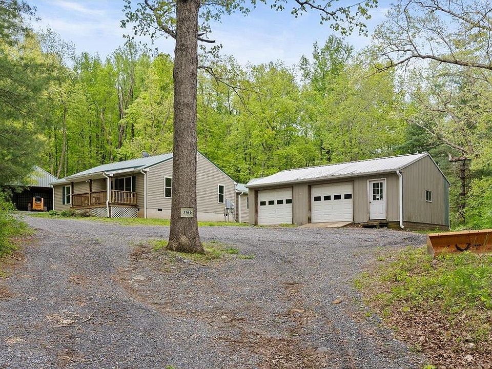 Your sweet seclusion awaits in Augusta County, VA. This two acre property holds the key to your future plans. A one level ranch offering a flexible floorplan, featuring 3 bedrooms, 3 baths, two living room options, new granite and range in the kitchen, newer metal roof, newer gutters, newer HVAC system and propane heating systems for back up. This home could potentially be split in to two living spaces with separate entrances and porches (if you are able to add a kitchenette to the other side backing up to bathroom). One side could potentially be a 2 bedroom, 2 bath and the other could potentially be a 1 bedroom, 1 bath. Enjoy the covered porches in the spring and summer, listen to the babbling creek, work on your cars in the oversized two car detached garage or store your farm equipment in the open barn. Located close to Wintergreen Resort, Sherando Lake, Hiking and so many more Shenandoah Valley outdoor activities!