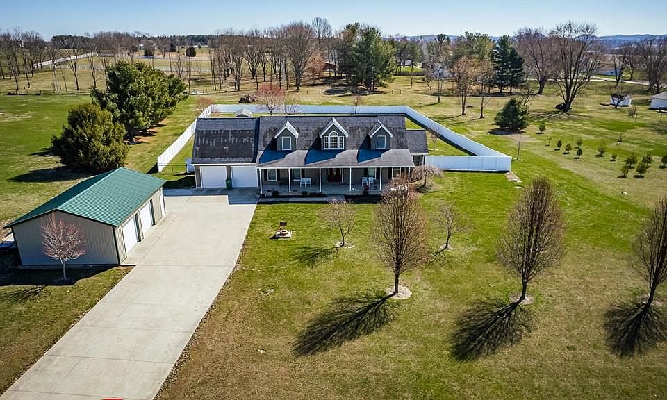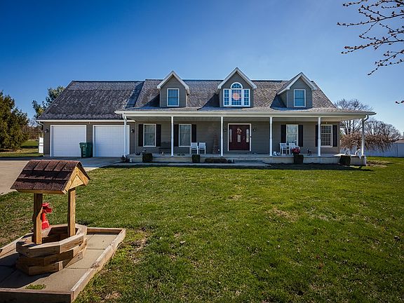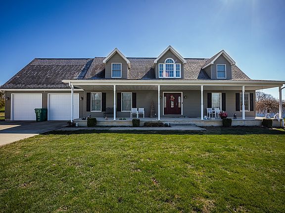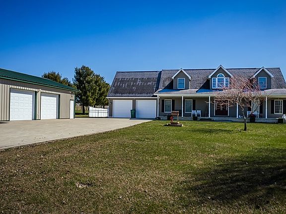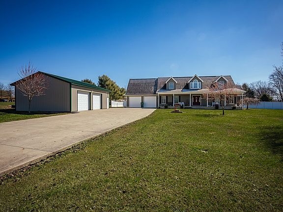 Located just minutes to Kingston and Chillicothe, this home has something for everyone! The property consists of 2.61 acres most of which is fenced with low maintenance white vinyl privacy fence. The concrete drive leads up to a 26 x 36 detached pole building as well as the attached 2 car garage. The spacious front porch extends the full length of the home and leads into the open 2 story foyer. On the main level you'll find 2 bedrooms one with private en-suite bath and adjacent main floor laundry room. Upstairs there are 2 more bedrooms and 2 full bathrooms offering a 2nd option for a primary suite with private attached bath and custom tile shower. The unfinished basement has poured concrete walls and plenty of room for storage and could easily be converted into additional living space. All located in Zane Trace School District, this one won't last long!