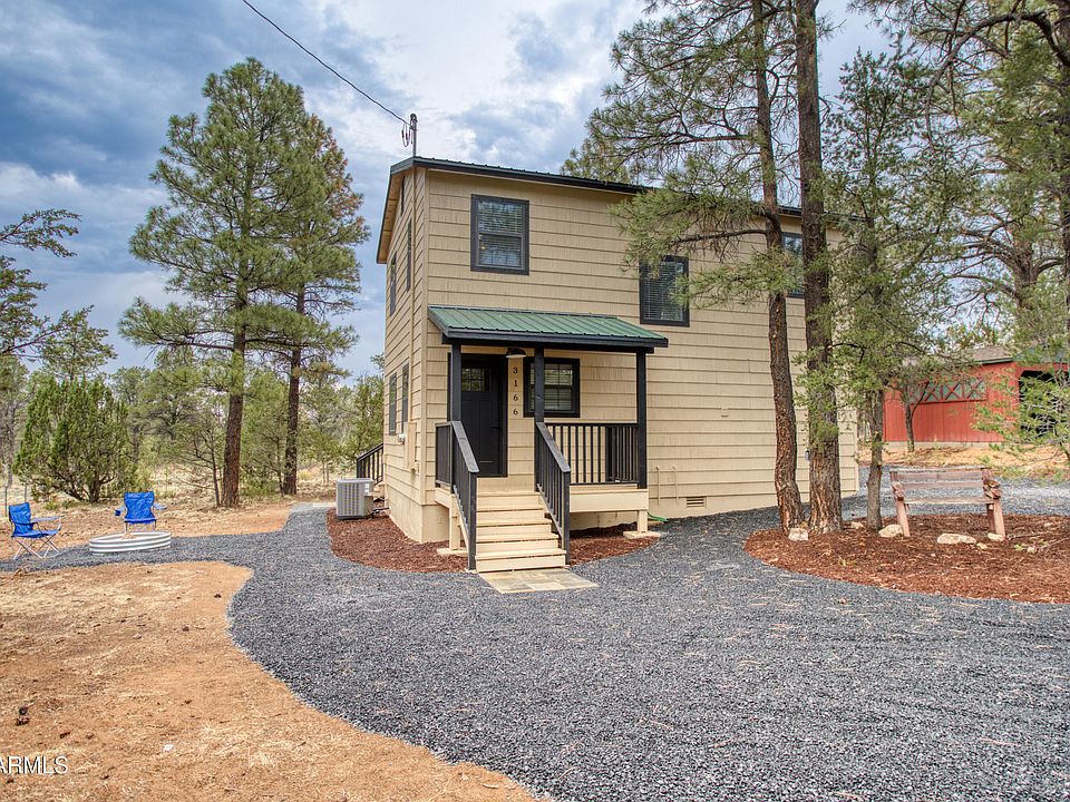 This brand new home has all the charm and upgrade to make a perfect full time home, second home or investment property. Backing to trees behind, this 90% new construction has been meticulously curated with wood laminate flooring, stylish cabinetry with soft close doors and drawers, granite countertops, decorator fixtures. Stylish tile surround fireplaces in the great room and primary bedroom add warmth and charm. A charming deck greets you and an exterior deck is perfect for outdoor dining and entertaining with no neighbors behind. All new interior construction means new wiring, plumbing, lighting, HVAC, windows, appliances package and more. Refrigerator and washer/dryer included. Escape the heat to the breezy trees and mountain living.