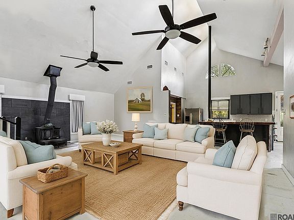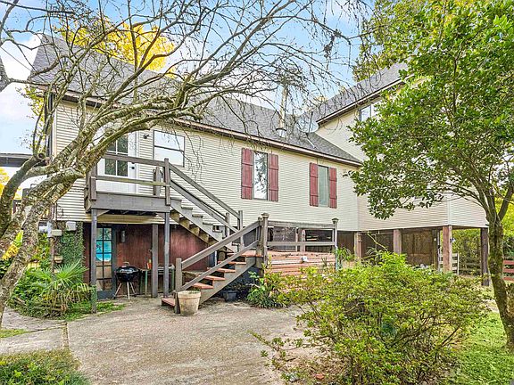 Experience peaceful living on the beautiful Tickfaw River, where comfort, charm, and nature blend seamlessly. Situated on 2.9 scenic acres, this well-maintained 4-bedroom, 3-bath home offers direct river access with a private beach-like area, perfect for fishing, relaxing, or creating your own serene riverside retreat. Whether you’re seeking a forever home, a weekend getaway, or a camp for hunting and fishing, this property offers the ideal combination of tranquility and recreation. The home is raised 9 feet, alleviating any flooding concerns while providing expansive views and generous storage below. A large raised deck with custom lighting surrounds the home, offering an inviting space for entertaining or enjoying peaceful sunsets over the river. Inside, you’ll find an open floor plan with vaulted ceilings, a wood-burning stove, and hardwood floors that create a warm and airy living environment. The sunroom is the perfect spot to unwind and take in the natural scenery year-round. The kitchen provides ample cabinet and counter space and includes a refrigerator and mounted TV, both to remain. All appliances were updated within the past five years, and a tankless water heater ensures modern efficiency. The primary suite features a Jacuzzi tub—currently in need of repair, though the tub itself is in good condition—and offers great potential for a spa-like retreat. Additional amenities include two AC units (one installed in 2004), well water and septic system (septic installed in 2020), and an outdoor bath with shower, sink, and toilet for convenience. There’s also a workshop downstairs, perfect for hobbies, storage, or outdoor projects. The lush property is adorned with two satsuma trees, banana and Japanese trees, and beautiful palms, adding to its tropical, resort-like atmosphere. With its thoughtful layout, natural beauty, and private access to the river, this property delivers an exceptional lifestyle where every day feels like a getaway.
