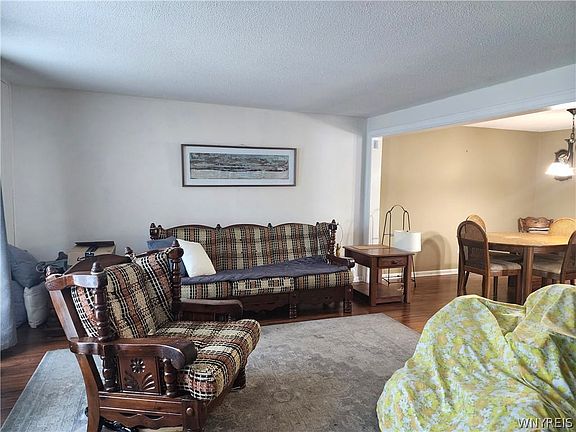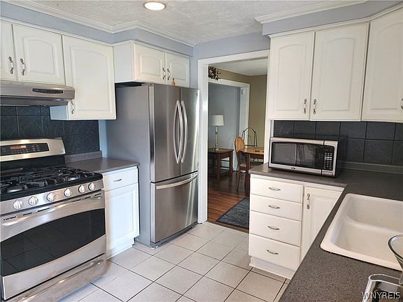 Welcome to this spacious 3 bedrooms, 1 1/2 bath home that has many updates. New front door leads to the tiled foyer & continues to the 1/2 bath & kitchen. The kitchen offers recessed lighting, stainless steel appliances. & white cabinets. New sliding door opens to the lovely covered deck that overlooks a wonderful yard. No rear neighbors. Formal dining room. New pergo flooring in the living room. & dining room. 6 panel white interior doors, new trim and woodwork. Tiled main bathroom along w/Corian top vanity. Master bedroom w/ double closets. Partially finished basement. Lots of storage. Roof & gutters 2017, Furnace 2013, HWT 2020. Electric will be updated, new circuit panel box, service line - August 2024. Newer vinyl windows. Pool not opened this year, has a newer cover, liner, & filter. Attached 2 car garage. Patio. West Seneca schools. 2024-07-31