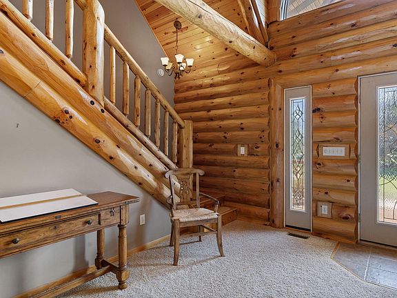 Nestled amongst the rolling hills in the highly desirable Galena Township rests this truly magnificent Wilderness Log Home. Escape the daily grind and unwind while embracing the serene beauty of your 4 acres of level land; a harmonious blend of open spaces sprinkled with trees. Featuring over 3200 sq ft of finished living space, this 3 bedroom, 2.5 bath custom log home has room to roam both inside and out. An abundance of natural light soaks every room of this warm and charming home. The main level consists of the open concept common living spaces joining the living room with a fieldstone gas FP, the well appointed kitchen with breakfast bar, dining room, a sensational sun room with panoramic views of your private slice of Pine Country, a 1/2 bath, main floor laundry and a rustic retreat of a primary suite complete with vaulted ceiling, en suite with soaker tub, separate shower & walk in closet along with a special little loft, just for you! The second story features two sizable bedrooms, a full bath and a fun, flex space perfect for a media room, rec room or home office. There is a partially finished walk out basement that is plumbed for another full bath. Many storage options are available between the basement, garage and shed out back. Want a place to tinker? Look no further... Enjoy your favorite hobby in the fully insulated, climate controlled 24X36 workshop (2 - 220 plugs). Conveniently located within minutes from major interstates, Lake Michigan & New Buffalo! NOW is YOUR chance to call this unique Heston property yours, where every detail reflects a commitment to quality, comfort and luxurious country living. Schedule your private showing today.