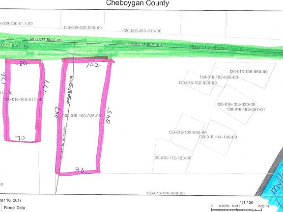 PRICE REDUCED. 2 Wooded lots for the price of one ! Build on one lot and have your garage or pole barn on the other. Nicely wooded, high and dry and walking distance to Mullett Lake. The survey stakes are in.