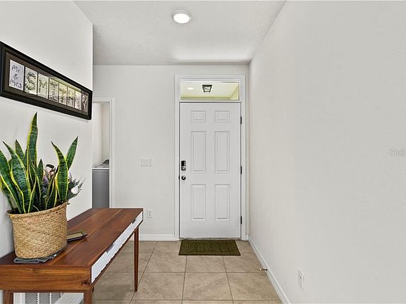 MOVE IN READY HOME in Ocoee's gated Oak Trail Reserve. This DR Horton "Allex" floor plan is a smart home that features 3 bedrooms, 2 bathrooms, a formal dining room, open floor plan, is barely 2 years old and has been lovingly maintained by its original owners. Upon entering this beautiful home, you will notice the earth tone paint, ceramic tile, open floor plan, view of the covered and screened in patio with a water view. You will appreciate the open floor plan with a kitchen that opens to the family room & dinette. The kitchen has many upgrades - 36" shaker cherry cabinets with hardware, granite counters, breakfast bar, stainless steel appliances & closet pantry. The family room overlooks the beautiful yard as well as the covered and screened in patio and pond with a fountain. The patio is a great space to enjoy your morning coffee or unwind at the end of a long day. The owner's suite is separate from the other bedrooms for privacy, overlooks the pond, has a large walk-in closet and an en-suite bathroom. The bathroom has double sinks with a granite vanity, and a glass enclosed shower. The 2 guest bedrooms are off the hallway behind the kitchen and have carpeting, ceiling fans and share the guest bathroom, which has a 1 sink granite vanity and a tiled tub/shower combo. The laundry room is located at the front of the house, has a window overlooking the front, and is close to the two car garage. Updates to his home include new paint in the family room, dining room, kitchen and owner's suite, ceiling fans in all rooms, and the patio has been screened in. Community features a pool and playground and is centrally located with easy access to the 429, the 408, the new Clarke Road extension and very close to the West Orange Trail. Don't let this beautiful home pass you by!