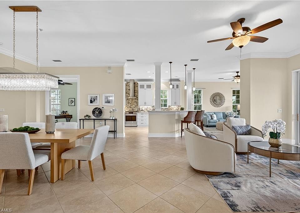 Discover this expansive 2nd-floor end-unit coach home in the sought-after Serena neighborhood of Fiddler’s Creek. With PRIVATE ELEVATOR and GENERATOR, this residence also features impact windows, storm shutters, a tankless water heater, and a newer roof—delivering both luxury and peace of mind. With over 3,000 sq. ft. of living space, the home offers 3 bedrooms plus a den, 3 full baths, and a spacious 2-car garage. The open, light-filled floor plan highlights a beautifully remodeled kitchen with stainless steel appliances, Taj Mahal quartzite countertops, and a custom backsplash, opening seamlessly to the large great room—perfect for entertaining. The primary suite boasts a stunning remodeled bath with dual quartz vanities, a walk-in glass shower, and a soaking tub. Two generously sized guest suites, each with en suite baths, provide comfort and privacy. Enjoy tranquil water views from the oversized screened lanai, along with access to the private community pool with heater and chiller, exclusively for Serena residents. Move-in ready, this rare offering combines upgrades, convenience, and resort-style living. Residents of Fiddler’s Creek enjoy access to world-class amenities, including a 54,000-square-foot Club & Spa with two on-site restaurants, resort-style pools, fitness center, tennis, pickleball, and bocce courts. Optional memberships are available for golf, beach, and boating. Ideally located just minutes from the white-sand beaches of Marco Island, downtown Naples, and an array of shopping and dining destinations.