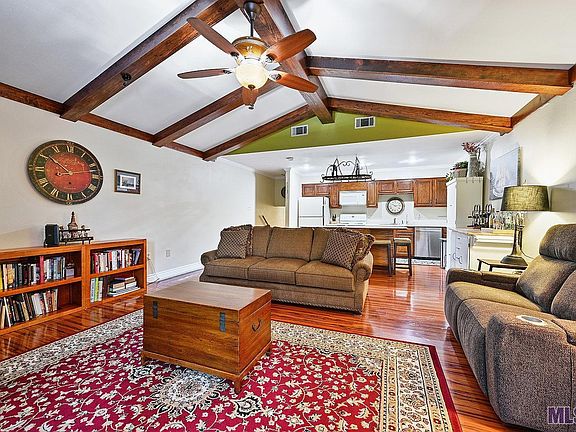 Pardon the beautification process!! Our neighbors are updating. Construction should be complete soon!! Step inside this beautifully decorated 2 BR 1 bath waterfront home. Walking through the front door you will find a stunning entry way with new wood flooring through out. The den offers a beamed cathedral ceiling with a balcony view leading to Tickfaw River. Fully equipped kitchen and breakfast bar, for preparing meals and entertaining, will surly be the center of the home! The master bedroom has a great balcony view overlooking wooded property across the street. Guest will be more than comfortable in the spacious guest room with large closet. Access to the community boat launch is seconds away. This home boasts a boat slip and covered dock. Downstairs area has half bath, multiple sinks, bar and tons of storage along with washer and dryer. Pontoon boat, all furniture, and decor available for additional cost. l Don’t wait to take a look. Get your Summer started with memories of river life!!