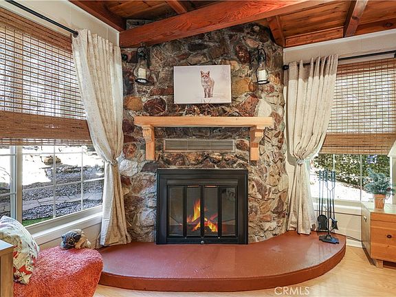 The peaceful mountain retreat with modern conveniences you have always wanted can finally be found at 31867 Valley View Drive! Make use of your entire flat lot with a paved driveway big enough for all the cars and all the toys you may need. Traverse the storybook path passing raised flower beds and dual paned picture windows entering through the cheery red front door. Upon entry you will find low maintenance flooring, gorgeous wood beamed ceilings, and a cozy stone fireplace. With its abundant natural light through the picture windows you can enjoy nature 365 days of the year without stepping outside. Wash dishes while watching squirrels scramble up pine trees in the updated kitchen that includes a dishwasher, gas stove, microwave, refrigerator, and an adjacent stacked washer/dryer. Let the kids and dogs out into the fully gated yard through a convenient kitchen side-door. Entertain with ease in a dining room that opens to the kitchen. On the main level is a full bathroom with a shower/bathtub combination. Up the extra wide stairwell is a landing space that leads to 3 bedrooms each with unique architectural details. Peaceful woodland views can be enjoyed from almost every window. Additional outdoor features include a large storage shed, enough paved parking for the extended family, private location away from the road, and pleasant curb appeal. Close enough to commute to the big cities down the hill as well as to use as a mountain retreat for Big Bear Resort and Lake Arrowhead!