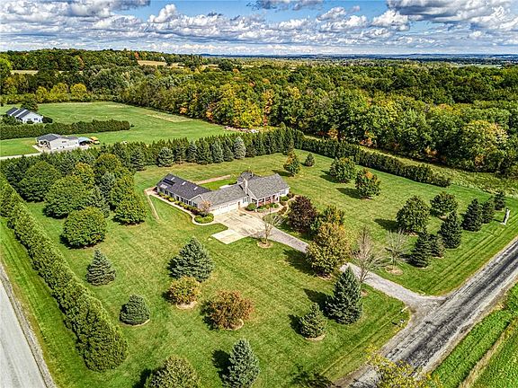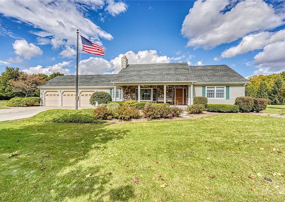 One of the best kept ranch homes you will ever find! This private property is an absolute gem and offers 3 beds, 3 full baths, 2 half baths, 1,965 sq ft w/ a 29x60 attached pool house featuring a 16x36 heated inground pool. The pool is heated w/ solar panels & propane while the pool house has waterproof walls & ceilings, skylights, a half bathroom, SGD to back deck & is an excellent spot to host guests or just relax by the water. A wall of arborvitaes (approx. 700 trees) surrounds the property for ultimate privacy & seclusion. The large & open kitchen offers solid surface counters w/ Brookhaven cabinets, recessed lighting, an island w/ second sink & leads to dining area w/ SGD to deck. The living room features hardwood floors, a gas fireplace & custom-made, built-in shelving & mantle. 2 of the bedrooms including the master suite have their own bathrooms w/ sound deadening insulation in the walls. Concrete, double-wide driveway w/ turnaround leads to oversized 3-car garage w/ remote-controlled stairs to attic space. Unfinished attic space accessible by stairs in house & can be finished for more living space. Open front porch, full 13-course walkout basement, updated roof & more!
