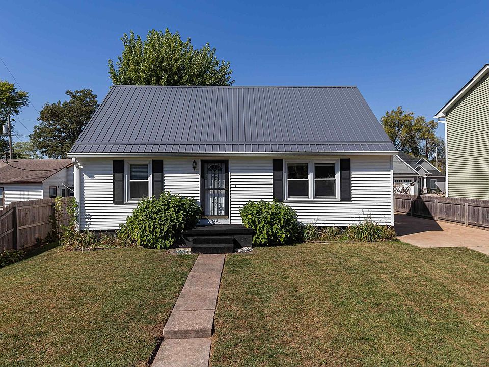 Charming 1.5-story, 3-bedroom, 1,460 sq ft home on a quiet street, just steps from schools and within a short walk to the riverfront. This well-maintained residence features a bright, practical layout with a cozy living area and a functional kitchen. Upstairs bedrooms offer flexibility for family living or a home office. The large yard is mostly fenced for privacy and outdoor enjoyment. A double-sided garage plus an attached large garden shed provide abundant storage and workspace. Proximity to the river, parks, and schools combines peaceful neighborhood living with convenient amenities. Move-in ready and awaiting your personal touch. Updates include: Walk in shower, Gutters w/ Leaf relief, A/C, Metal roof, water heater, furnace, fence.