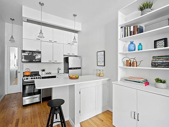 Perfectly located off of Park Slope's bustling 5th Avenue is this sun-filled, south facing studio with pre-war charm. Great ceiling height and oversized windows give the space a wonderful loft-like feel. A decorative fireplace with exposed brick and built in book shelves serves as the centerpiece of the living space. The kitchen is separated by a counter that offers room for both prep and dining. The functional kitchen features stainless steel appliances including a dishwasher, and lots of built in storage. A sparkly bathroom completes the package with a comfy soaking tub. This 13 unit coop is pet friendly (including dogs) and allows pied-a-terre's. Central laundry, bike storage and your own personal storage area are in the basement. Equidistant to the F/G, and R trains and overlooking J.J. Byrne park and the Old Stone House the location cannot be beat. Nearby are plenty of shops, great restaurants, Whole Foods and the weekend farmer's market. All of this and fabulously low monthly maintenance. It's a perfect city retreat!