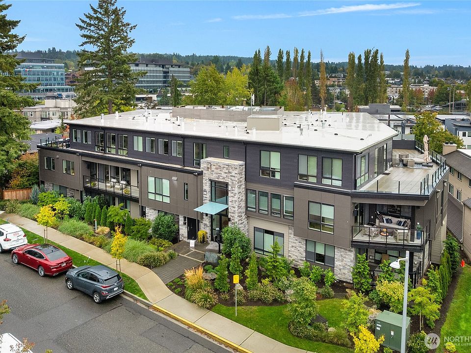 Unrivaled luxury at Steeple Rock! This exceptional 1,993 sqft residence blends modern sophistication with timeless design. This 2-bdrm, den/flex, 2-bath masterpiece is bathed in southern light with Penthouse-inspired style and elegance. From flawless finishes to a serene sense of privacy, every detail reflects uncompromising quality. Chef's dream kitchen offers a 10.5' quartz slab island with waterfall accents & breakfast bar complimented with Wolf gas range, Sub-Zero & Jenn Air appliances. Walls of glass define the amazing great room. Primary suite offers spa-inspired bath & designer walk-in closet. Exclusive & secure building w/ luxurious lobby, elevator, reserved parking & storage. Steps to downtown Kirkland. True lock & leave lifestyle!