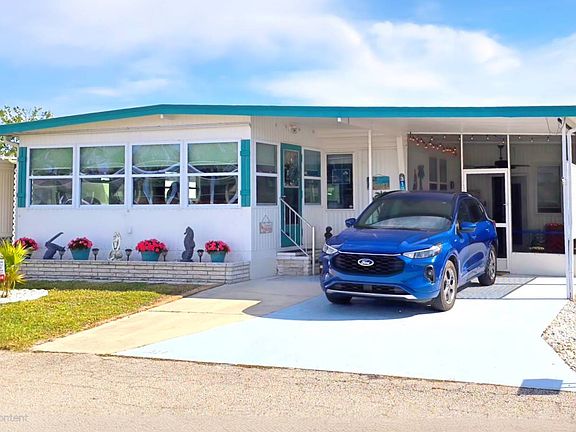 317 8th St is a beautifully maintained, fully-furnished home that captures the best of carefree Florida living. This immaculate residence offers exceptional curb appeal with mature trees, vibrant flowering plants and 2 paved areas perfect for golf cart parking. Located in the desirable, pet- and motorcycle-friendly Lake Village community, this move-in-ready home combines comfort, style, and convenience, ideal for year-round living, a seasonal retreat, or an investment property. The peaceful setting is just 1.8 miles from the Gulf Coast's renowned beaches and scenic intracoastal waterways, placing you close to everything while maintaining a sense of privacy and relaxation.Inside, you'll find a spacious open floor plan with two bedrooms and two bathrooms. The home includes dual Florida rooms that significantly expand the living area, offering versatile spaces for leisure or entertaining. The side enclosed Florida room is air-conditioned and connects to a large utility shed that houses the washer, dryer, and abundant storage. The front Florida room, also air-conditioned, opens directly to the generous living room, creating a bright and inviting space. An additional backyard shed provides even more storage options. Numerous upgrades enhance this property, including a 3-ton York HVAC installed in 2023 with a transferable warranty, a durable rubber-insulated "roof-over" system, updated laminate and tile flooring throughout and a fully renovated kitchen with modern cabinetry, counter-tops and stainless appliances. The newer insulated windows feature decorative diamond panes for both charm and energy efficiency, while updated electrical and plumbing systems offer added peace of mind. Lake Village is a distinguished 55+ community in the coastal city of Nokomis, Florida, offering resort-style amenities such as a heated pool, whirlpool spa, fitness center, billiard rooms, putting green, bocce and horseshoe courts, library, banquet hall, and multiple Tiki, BBQ picnic areas. Bonus; On-site RV and boat storage add further convenience. The monthly lot rent of approximately $1,100. This includes the water/ sewer, weekly lawn care, waste removal, pass-through taxes and full access to all community amenities. All prospective homeowners must complete the park's application and approval process prior to purchase. Conveniently close to award-winning beaches, restaurants, shopping, medical facilities, this exceptional residence offers the perfect blend of relaxation, recreation, and coastal charm in one of Southwest Florida's most desirable 55+ communities. All listing information is deemed reliable but not guaranteed. Independent verification is encouraged.