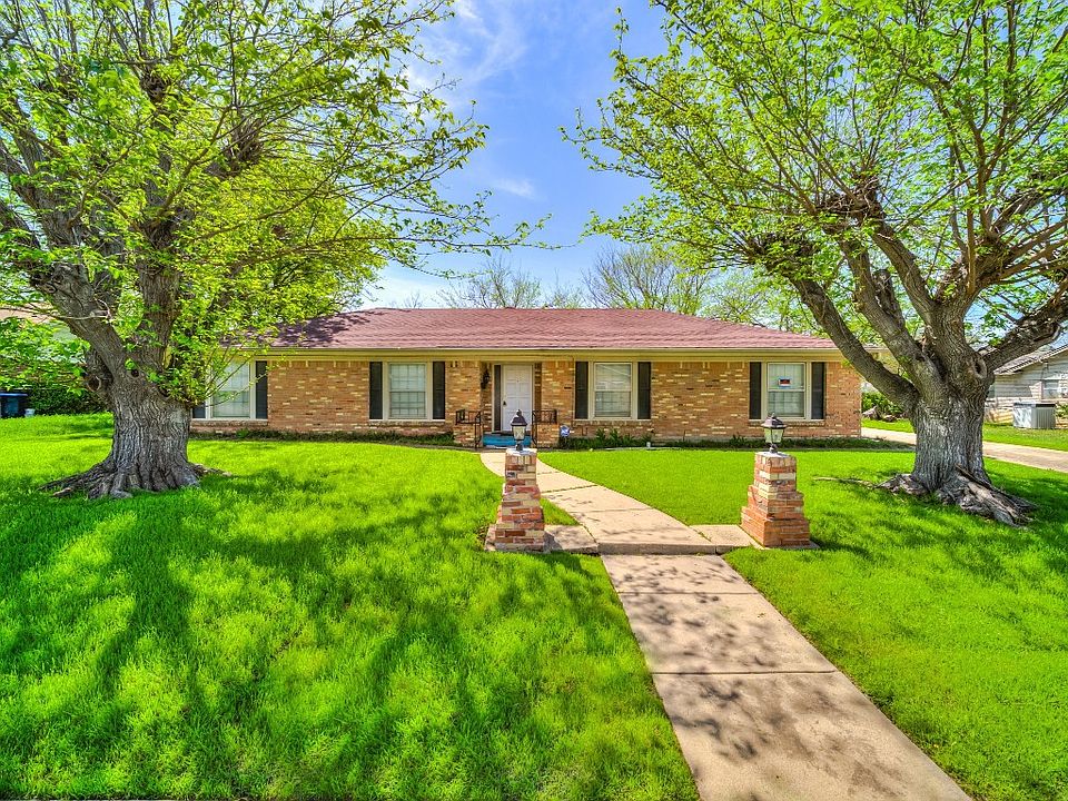 Beautifully updated single-story home featuring a 4-car attached carport, RV parking, upgraded light fixtures, wood-grain vinyl plank throughout, and all neutral paint! Floorplan offers formal living and dining area, 2nd spacious living area with deco fireplace hearth, and eat-in kitchen with granite countertops and fridge! 3 bedrooms, 2 full baths, washer & dryer, huge yard space!