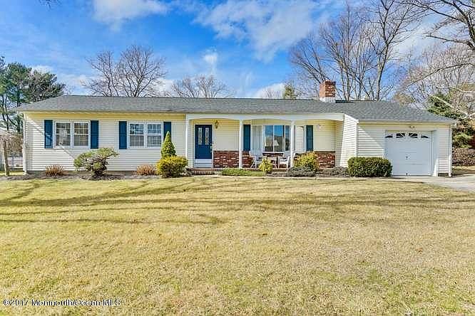 Charming expanded 3 bedroom 2 full bath ranch in immaculate condition with 1 car garage. This home features an updated eat in kitchen with 42 inch cherry cabinets, granite countertops, and tile backsplash. Living room with wood burning fireplace and hardwood floors. Extended family room with wide plank floors, wood burning fireplace, recessed lighting, and slider to paver patio. Master bedroom with updated master bath, hardwood floors, and plenty of closet space. Huge private, fenced yard with inground pool and underground sprinklers. Close to local shopping and dining.