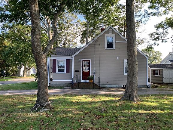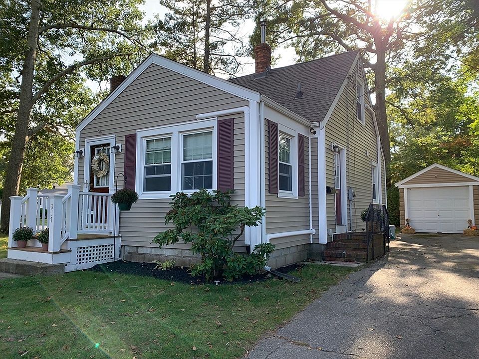 Classic New England Cape situated on a corner lot with trees and hedges lining the yard. A short walk to Buttonwood Park which has a Zoo, duck pond, playground, tennis/pickleball courts, sidewalks and walking paths. Once you enter the front door and pass through the entry hall, you will be greeted by a graciously sized living room with a fireplace. Adjacent to the living room is the well appointed kitchen with access to the driveway & spacious side yard with detached garage and storage shed. There is a raised ceiling above the dining area making it extra inviting. Two bedrooms & a full bathroom on the first floor make one floor living easy. The second floor has two well sized bedrooms. MANY UPGRADES by the current homeowner include DUCTLESS MINI-SPLITS in every room (except bathroom), BRAND NEW ROOF in 2024, the WOOD FLOORS were REFINISHED and the interior was painted in 2022. Great location for easy access to Rte 140 and Rte 195.