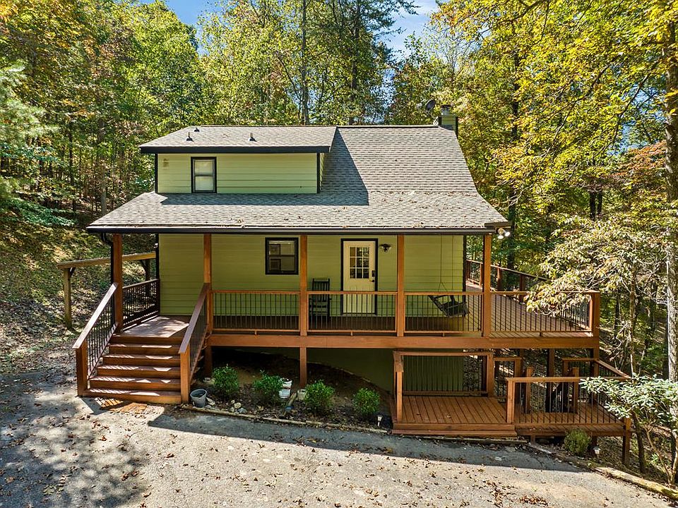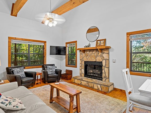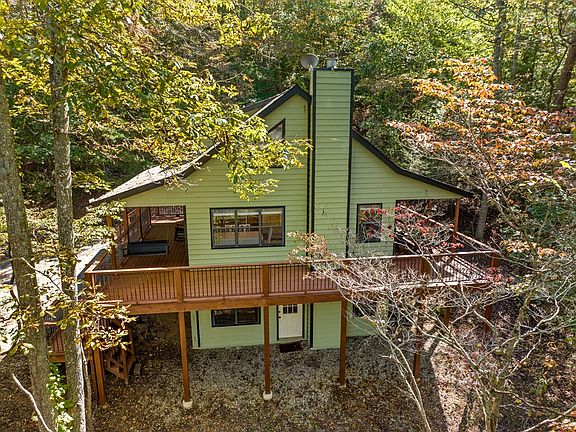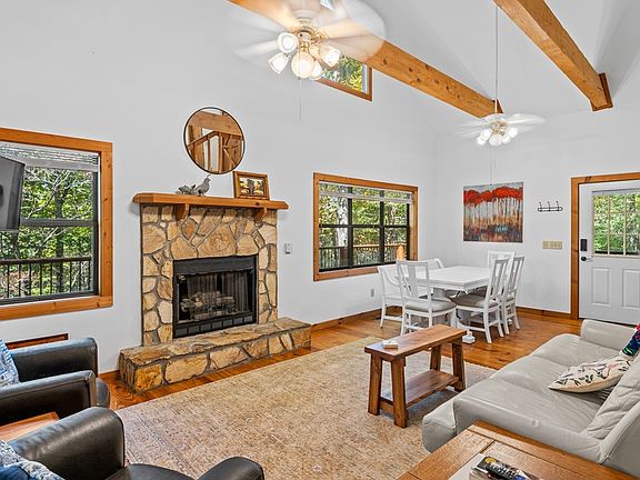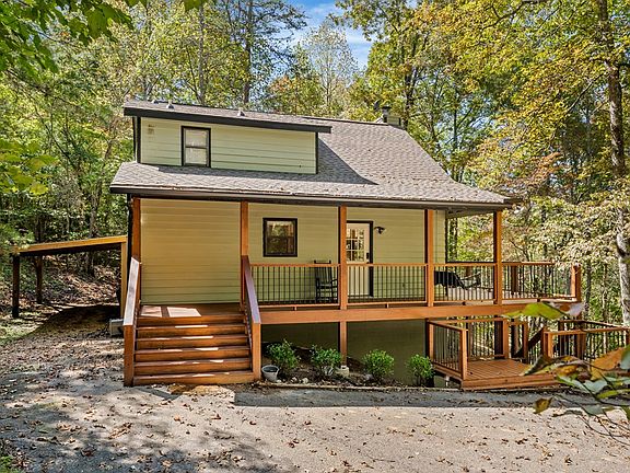 Quintessential cabin bungalow in the heart of the North Georgia Mountains with a crisp and lofty interior, private landscape and convenient location -- welcome to "Coosa Cabin!" Complete with a large open-concept main level living space w/ comfortable living room and stone fireplace, large dining area, full kitchen and soaring cathedral ceilings. Living space opens up to a gorgeous wraparound deck that was recently completely redone. Find a bedroom suite on each level w/ comfortable furnishings and decor. On the terrace level, home is complete with a game room and bunk area (or third bedroom). Warm hardwoods and exposed pine beams contour the entire space leaving this bungalow feeling rustic yet bright and contemporary. Immerse yourself in nature with North Georgia wildlife like deer in your backyard every morning or find yourself only a short walk from trophy trout fishing. Sold fully-furnished, this retreat won't last long! Call today for an exclusive tour.