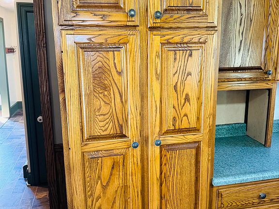 Laundry room has built in storage, home has unique layout with two staircases.