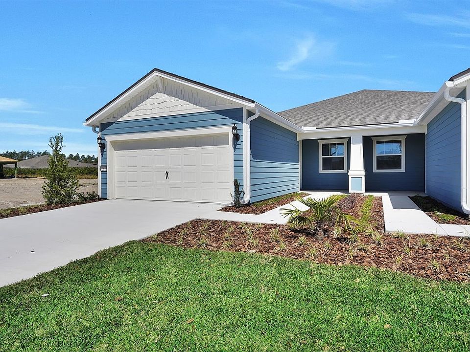 Explore the popular Ellenwood floorplan and enjoy low-maintenance living in this charming Villa home. Featuring a Craftsman Exterior, this home offers 2 Bedrooms, 2 Bathrooms, a 2-Car Garage, Luxury Vinyl Plank Flooring throughout, and a versatile Flex Room—ideal for a home office or gym. The stylish Kitchen shines with Stainless-Steel KitchenAid Appliances, White Cabinets, and Quartz Countertops, opening to a cozy Café and spacious Gathering Room. Step outside to your Covered Lanai for easy indoor/outdoor entertaining. The private Owner's Suite features a Dual-Sink Vanity, Quartz Countertops, Walk-In Shower, Private Water Closet, and Walk-In Closet. Located in Del Webb Wildlight, an active adult community near Downtown Fernandina, Amelia Island beaches, and Jacksonville, you'll enjoy resort-style amenities and a vibrant lifestyle designed just for you.