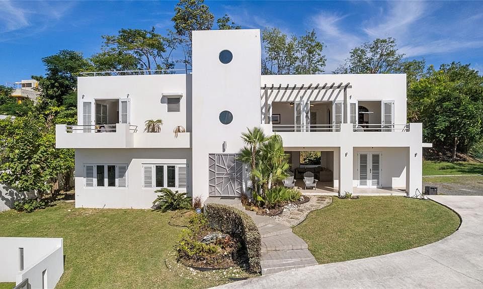Perched above the coastline in one of Rincón’s most desirable areas, this contemporary 4 bedroom, 3.5 bathroom residence with a generous gross floor area of 3,871.23 sq ft captures the essence of relaxed Caribbean luxury. Sunlight pours through expansive openings, framing uninterrupted ocean views from the living and dining areas, while the gentle breeze flows effortlessly throughout the home. With multiple terraces overlooking the treetops and sea, every moment here feels connected to the natural beauty of Puerto Rico’s west coast. Inside, the home features bright, open spaces designed for comfort and style. The primary suite offers its own private oasis, complete with an ensuite bathroom and a stunning ocean-view balcony—perfect for savoring quiet mornings or ending the day with the town’s iconic sunsets. The kitchen provides a functional space ideal for both everyday living and entertaining. Spacious guest bedrooms and well-appointed bathrooms ensure comfort for family or visitors. Outdoors, the property continues to impress with covered terraces, open-air lounging areas, and landscaping that enhances the tranquil setting. From the lower patio and entertainment space to the rooftop terrace with panoramic views, this home is built to enjoy Rincón’s famous sunsets year-round. Just minutes from beaches, dining, and surf spots, this is the perfect retreat for those seeking a lifestyle defined by ocean views, privacy, and timeless island living.