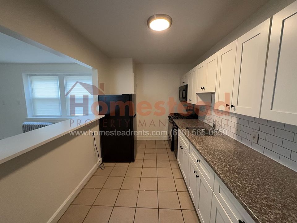 Located in the heart of Collingdale. Enter your apartment through a private entrance to great features including plank floors, spacious kitchen, modern bathroom and 1 bedroom. Kitchen is fully equipped with a stove, microwave, refrigerator, dishwasher, garbage disposal, granite countertop, white shaker cabinets and stylish subway tile backsplash. Located in Southeast Delco School District. No laundry on site, laundromat is close by.