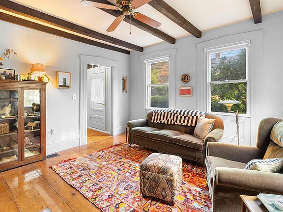 This Circa 1820's cape is awaiting new stewardship. Nestled into the trees just a half mile away from town is this lovely 4-bedroom, 1-bath home with possibility for more. The living space welcomes you into an open kitchen/dining space with a screened in porch for outside dining or sitting with a private view. The living area and parlor rooms are adorned with high ceilings accentuated with exposed beams, making each space inviting. You will find beautiful pumpkin pine floors guiding you through the home and prominent door and window trims throughout. The four bedrooms are all on the upper level with an additional large unfinished space for whatever project you have in mind. Whether you are enjoying the quiet back yard or the close proximity to town, the historical charm of this home will put you right where you want to be.