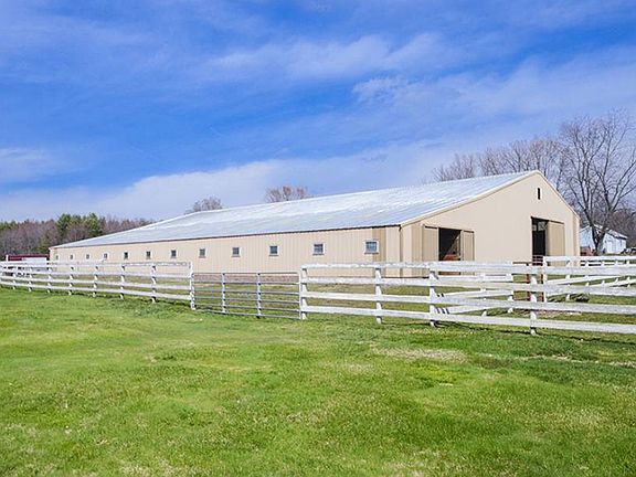 This equestrian property has everything you need for a private facility or a great setting to start or move your existing horse business. Privately owned now it has been lovingly taken care for, has level property 18 box stalls that flank the indoor arena. An outside ring, pastures, paddocks, parking and room to grow on 25 acres. The 1800 sf 3 bedroom residence offers one level living, updated granite countertops, an open floorpan, hardwood floors, valued ceilings in the family room, fireplace, first floor laundry and a finished lower level adding 625 sf. The in ground pool offers a great way to cool off after a good day of riding and training. Located just minutes off I-91 this is a convenient location and easy access to everything.