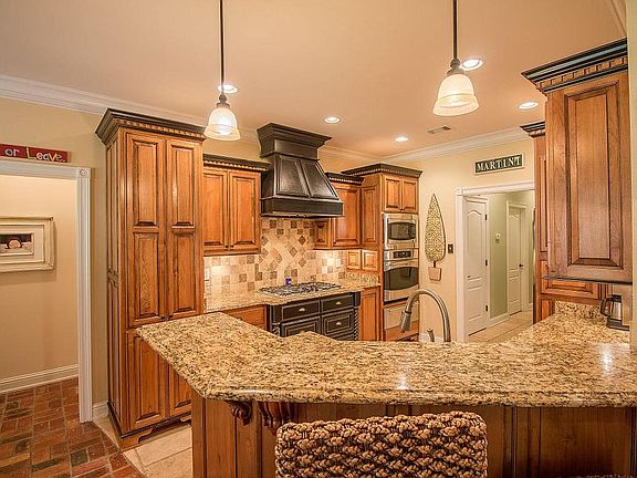 Fantastic home in Goose Pointe subdivision! From the moment you walk through the front doors, this house welcomes you with its beautiful brick floors and custom archways and millwork. This split bedroom plan has a spacious master suite, a smaller master suite, and 2 guest bedrooms. The spacious master has great closets and lots of additional storage. The family room features a beautiful stone fireplace. Kitchen has custom cabinets, granite counters, travertine back splash and floors. This home also offers a large laundry room, a private office and bonus room. The back patio has been extended to allow plenty of room for enjoying the pergola. Large privacy fenced yard has an inground pool and a fire pit.