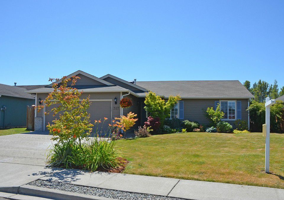 True pride and ownership in this well maintained rambler in Whitehawk Community. Great floor plan with nice size bedrooms and den. Walk in pantry with stainless steel appliances. Spacious living room with corner gas fireplace. Wonderful view of Mt. Rainier with backyard that opens up to open field. Must come see to appreciate.