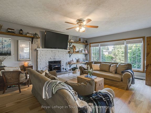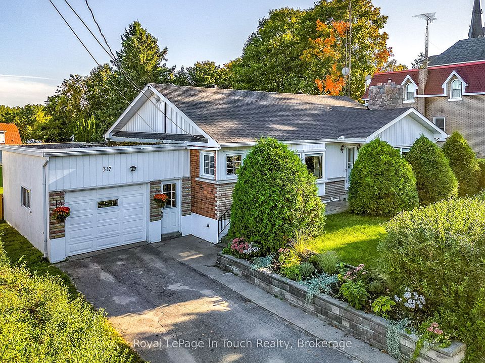 Welcome to 317 Lafontaine Road West, a bright and welcoming brick bungalow on a generous lot in the heart of the Lafontaine community, and just minutes from the sandy shores of Georgian Bay. This inviting home offers large principal rooms filled with natural light, a dining area with bay window, and a renovated 4-piece bath with a generous walk-in shower. The main level features 1,294 sq ft, updated flooring, and the convenience of main floor laundry, plus a charming, enclosed laundry porch with a clothesline that extends right into the porch through a quaint little door. A wood fireplace insert adds warmth and comfort, offering a cozy focal point for gatherings in the living room. Recent updates include new shingles in August 2025 and a new owned hot water tank in June 2025. Comfort is provided by a forced-air gas furnace and central air conditioning. The attached single garage with inside entry provides everyday convenience, while the full, high walk-up basement is ready for your future plans. At the back of the property, a 20' x 30' charming stackwall workshop with a loft, provides extra space for hobbies, storage, or projects. Nearby you can enjoy the shops in the village of Lafontaine, the sandy beaches of Georgian Bay, boating, golf, skiing, and the natural beauty of Awenda Provincial Park, along with live theatre and local cultural attractions. This home is just 15 minutes to the amenities of Midland and Penetanguishene, and only 90 minutes to the GTA. With its blend of comfort, updates, and location, this property is a great fit as a first home, a year-round residence, or a promising investment.