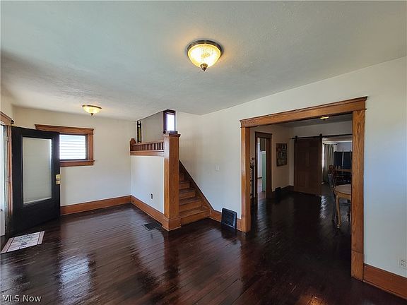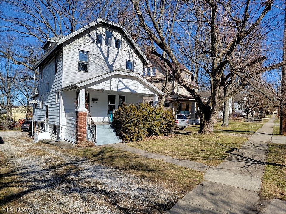 LOCATION, LOCATION! This home is located within walking distance to downtown Kent, Kent State University, shopping, restaurants, walking and bike trails. As you walk up to the front door there is a large covered front porch that will make a great place to gather and enjoy each other's company! Spacious enough for a grill, table and chairs! Wait until you see the original woodwork throughout the house! Left in excellent condition, you will love the gorgeous built-in cabinets in the formal dining room, a place to show off your favorite glassware! Living room with wood burning fireplace, game/family room with almost 270 square feet which allows lots of space to throw a bed in there so your overnight guests have a place to stay! Second level has a full bath and three bedrooms. The third floor can be used as a fourth bedroom with enough space for many twin size beds if needed or turn it into a private art studio, office or yoga room. Just off the kitchen is an additional eat in area which w