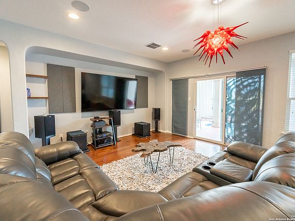 Welcome Home to Landmark Pointe! This beautiful well kept single family home features an open living concept, Large Master bedroom, No carpet, custom fixtures and an above ground personal leisure pool with privacy shades. Equipped with 3 bedrooms, 2.5 bathrooms, 2 car garage and built in surround sound for the living room, you are sure to enjoy life in the sprawling City of Cibolo. Close to Schools, Shopping, RAFB and situated towards the back of the neighborhood right next to the walking trails leading to the the community park. Priced under market value, dont let this one slip through your fingers!