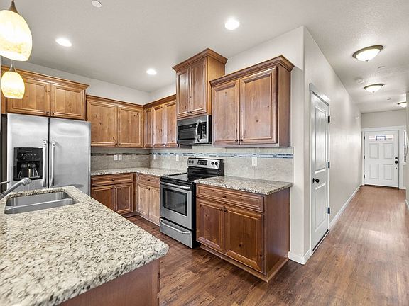 Granite kitchenHardwood floorUpgraded carpetStainless appliancesCustom cabinets