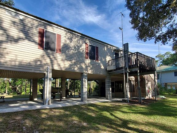When you are looking to get away from the big city, neon and redlights, come on down to the beautiful Suwannee River! This move-in ready home is a perfect investment for vacation rental that will sleep 14 or bring the whole family. Enjoy the gorgeous river views from the large back porch of the well maintained, 3 bedrooms, 2.5 bath home. With 2 full kitchens and extra bathroom downstairs, there is plenty of space for a large family to play and enjoy time together. Plenty of parking for all your vehicles, boats, and Buggys under the house. Spacious work-shop area, new drain field 2022, Aerobic sewer system with new air compressor 2022 and new field lines. This structurally engineered home also has water filtration system and metal roof. The wooden deck will take you down to the rope swing and the new aluminum dock is ready to dock the boat in between rides. The quiet neighborhood has a private beach, and the public boat ramp is a short ride away on the next road. The small town of Mayo is 8 miles away; Live Oak is 29 miles and Lake City is 42 miles. Call today for your own private showing.