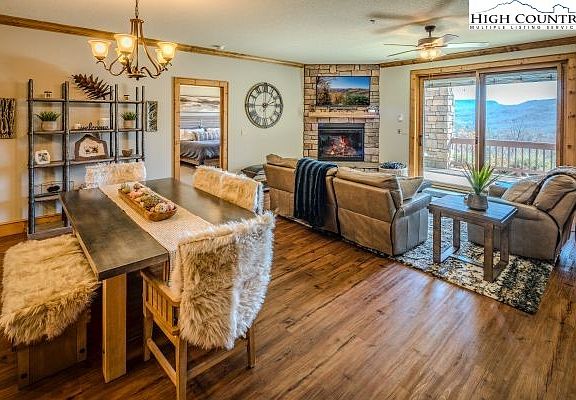 Step into effortless, refined mountain living in this level-entry two-bedroom, two-bath condo unit located at The Vistas just minutes from downtown Banner Elk and between both of the High Country’s premier ski resorts. This unit features high end finishes, with a natural gas range, granite countertops, stainless steel appliances and a cozy corner fireplace. Enjoy the long-range views of Grandfather Mountain from your covered patio or the primary suite, which features double vanity, low-entry shower and an oversized jetted tub. The sizeable laundry room offers a utility sink, side by side washer and dryer and ample cabinet storage. Experience this low maintenance, yet well-maintained, fully furnished unit for yourself today!