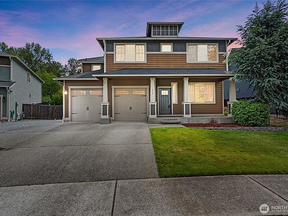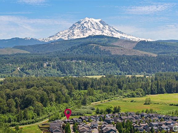 Fully wired Smart Home with Mt. Rainier views in the Hidden Lakes community now available! Downstairs you'll find a bright & airy open concept living/dining/kitchen space that opens to your huge, private back yard. A downstairs den gives office space without sacrificing a bedroom. Upstairs you get 4 bedrooms PLUS a large loft space perfect for a second living area. Primary bedroom with beautiful ensuite bath look out over your giant back yard--no neighbors behind you! 3 car tandem garage has tons of built in storage, and extra pad was poured in 2020 for more vehicle storage. Central A/C for the upcoming summer! Backyard irrigation helps you care for that huge yard. Access to river trail is just down the street. This one has it all!
