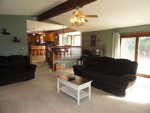 PINE RIDGE LANE 4+ bedroom, 3 bath sprawling city ranch offers 2080 sq ft main level with sunken living room, vaulted ceiling, field stone fireplace, & patio doors to rear deck/yard. Spacious kitchen has tile floor, work island, large peninsula, abundant cabinetry/pantry & counter space galore. Spacious master en suite, private bath, walk-in closet, beautiful bay window & patio doors to rear deck overlooking the garden, yard & woods. 1596 sq ft finished lower level: family room, large bedroom, 1/2 bath, plus 2 bonus/hobby/storage rooms & laundry/mech room. Walk-out lower level to rear landscaped yard, fenced in garden area, & tiered decks. New in 2016 are roof shingles, garage entry door, paint & some new flooring. Other amenities include cedar siding, aluminum soffit/fascia/gutters, patio paver approach to large home entry, central air, and 2+ attached insulated and drywalled garage. Few neighbors with end of road location & county staging lot next door. A lot of bang for your buck!